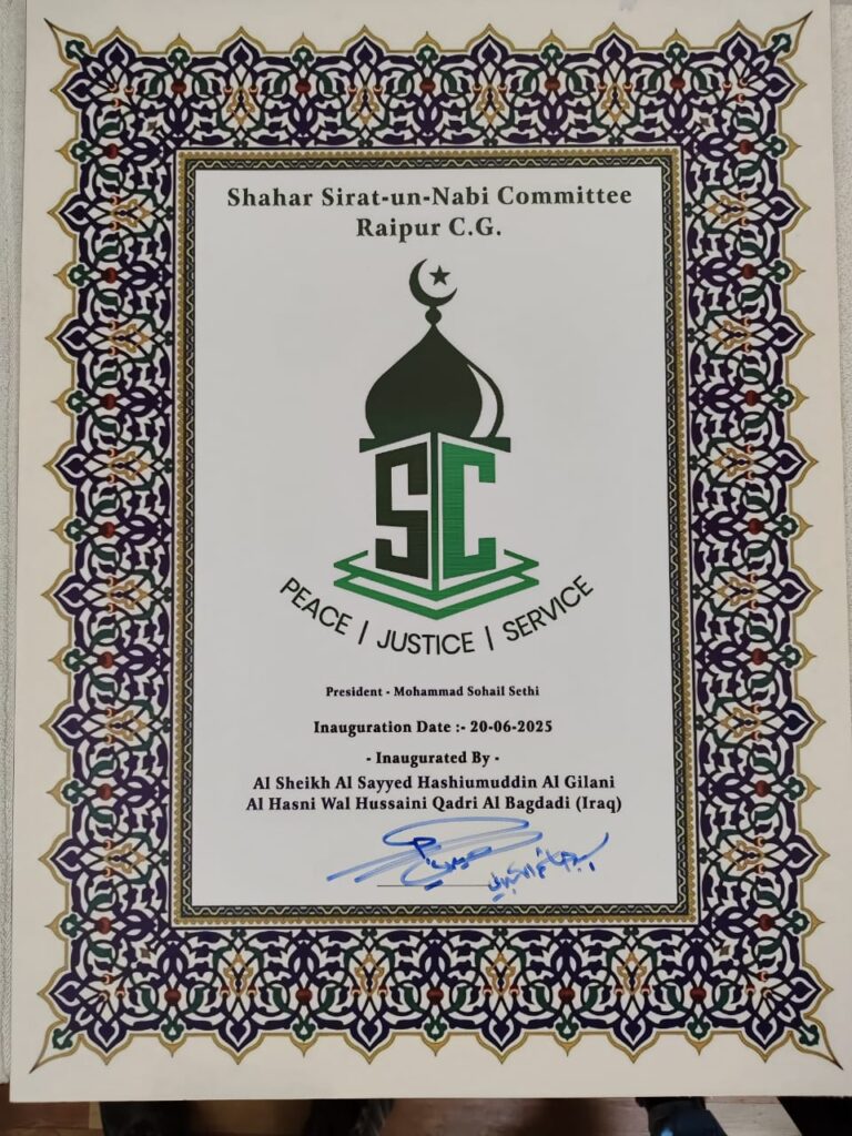 गौस-ए-आज़म के वंशज “शहज़ादा-ए-गौस पाक” हज़रत अल हाशिम अल जिलानी द्वारा शहर सीरत कमिटी के लोगो का रूहानी विमोचनइस्लामी माहौल, सूफियाना रूहानियत और इत्तेहाद का नायाब नज़ारा जुमा के दिन उस वक़्त देखने को मिला जब शहर सीरत उन नबी कमिटी के नवनिर्मित लोगो (प्रतीक चिन्ह) का ऐतिहासिक विमोचन गौस-ए-आज़म हज़रत शेख अब्दुल क़ादिर जिलानी रहमतुल्लाह अलैह के रूहानी वारिस “शहज़ादा-ए-गौस पाक” हज़रत अल हाशिम अल जिलानी साहब के दस्ते मुबारक से अंजाम पाया।यह मुकद्दस मौका न सिर्फ शहर के लिए बल्कि पूरी क़ौम के लिए एक बड़ी रूहानी रहमत और फख्र का सबब बना।सोहेल सेठी ने पेश किया नई सोच और एकजुटता का नज़रियाकार्यक्रम की मेज़बानी शहर सीरत कमिटी के नवनियुक्त सदर सोहेल सेठी ने की, जो हाल ही में भारी जनसमर्थन से चुने गए हैं। सदर बनने के बाद से सोहेल सेठी कमिटी में नई ऊर्जा, ज़िम्मेदारी और पारदर्शिता लाने के लिए निरंतर सक्रिय हैं।अपने स्वागत भाषण में सोहेल सेठी ने कहा:”हमारी कोशिश है कि सीरत कमिटी केवल एक संस्था न रह जाए, बल्कि उम्मत को जोड़ने और पैग़म्बर-ए-इस्लाम हज़रत मुहम्मद स.अ.व. की सीरत से रौशनी लेकर समाज को बेहतर बनाने का ज़रिया बने।”गौस-ए-आज़म के वंशज की दुआएं और रहनुमाईहज़रत अल हाशिम अल जिलानी साहब ने लोगो के विमोचन के बाद सोहेल सेठी और उनकी टीम को दुआओं से नवाज़ा और तालीमी, समाजी व मज़हबी खिदमत को जारी रखने की ताकीद (हिदायत) दी। उन्होंने कहा कि:”सीरत-ए-नबी का पैग़ाम जब तक आम लोगों तक नहीं पहुंचेगा, समाज में असल तब्दीली नहीं आएगी। शहर सीरत कमिटी इस काम को अंजाम दे रही है – यह बेहद काबिले-तारीफ है।”विशेष अतिथियों की मौजूदगी ने बढ़ाया आयोजन का रुतबाइस मौके पर वक़्फ़ बोर्ड के अध्यक्ष डॉ. सलीम राज, धार्मिक स्कॉलर्स, समाजसेवी, पत्रकार और शहर की कई जानी-मानी हस्तियां मौजूद रहीं। सभी ने इस पहल की सराहना की और इसे एक नई शुरुआत करार दिया।शहर में धार्मिक जागरूकता और सीरत-ए-नबी के पैग़ाम को फैलाने की पहल है।आपका और हमारा शहर रायपुर गौस-ए-आज़म के वंशज “शहज़ादा-ए-गौस पाक” हज़रत अल हाशिम अल जिलानी द्वारा शहर सीरत कमिटी के लोगो का रूहानी विमोचनइस्लामी माहौल, सूफियाना रूहानियत और इत्तेहाद का नायाब नज़ारा जुमा के दिन उस वक़्त देखने को मिला जब शहर सीरत उन नबी कमिटी के नवनिर्मित लोगो (प्रतीक चिन्ह) का ऐतिहासिक विमोचन गौस-ए-आज़म हज़रत शेख अब्दुल क़ादिर जिलानी रहमतुल्लाह अलैह के रूहानी वारिस “शहज़ादा-ए-गौस पाक” हज़रत अल हाशिम अल जिलानी साहब के दस्ते मुबारक से अंजाम पाया।यह मुकद्दस मौका न सिर्फ शहर के लिए बल्कि पूरी क़ौम के लिए एक बड़ी रूहानी रहमत और फख्र का सबब बना।सोहेल सेठी ने पेश किया नई सोच और एकजुटता का नज़रियाका