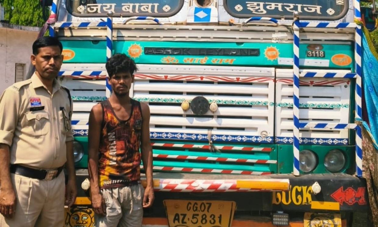 खमतराई पुलिस की त्वरित कार्यवाही, चंद घंटे के भीतर पकड़ा गया आरोपी को ट्रक के साथ।