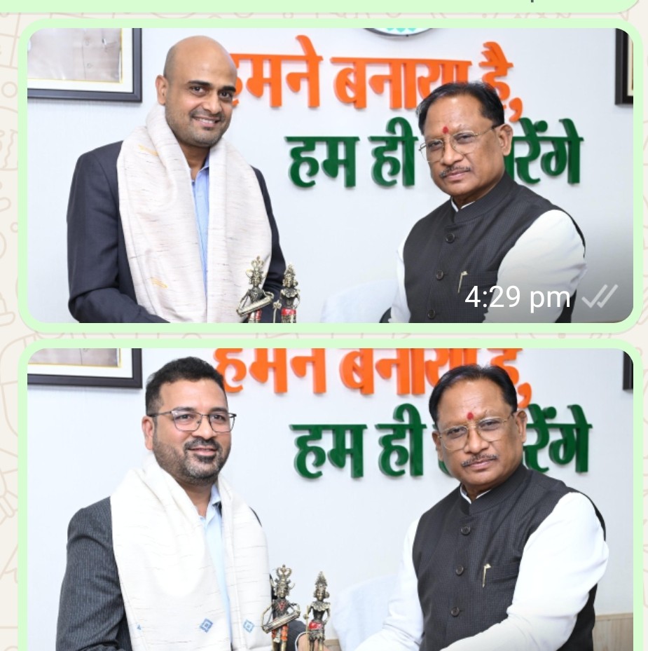 मुख्यमंत्री श्री विष्णु देव साय से आज राजधानी रायपुर स्थित मुख्यमंत्री निवास कार्यालय में गूगल फॉर एजुकेशन इंडिया के प्रमुख श्री संजय जैन एवं गूगल इंडिया के पब्लिक पॉलिसी प्रमुख श्री राजेश रंजन ने सौजन्य मुलाकात की। मुख्यमंत्री श्री साय ने अतिथियों का पारंपरिक सम्मान करते हुए उन्हें शॉल एवं बस्तर कला की प्रतिकृति भेंट की। ।